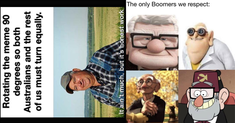 Posted In Rdankmemes By Uwhaleshabob Reddit Rotating The Meme 90 Degrees So Both Australians And The Rest Of Us Must Turn Equally It Ain T Much But It S Honest Work Made With Memati