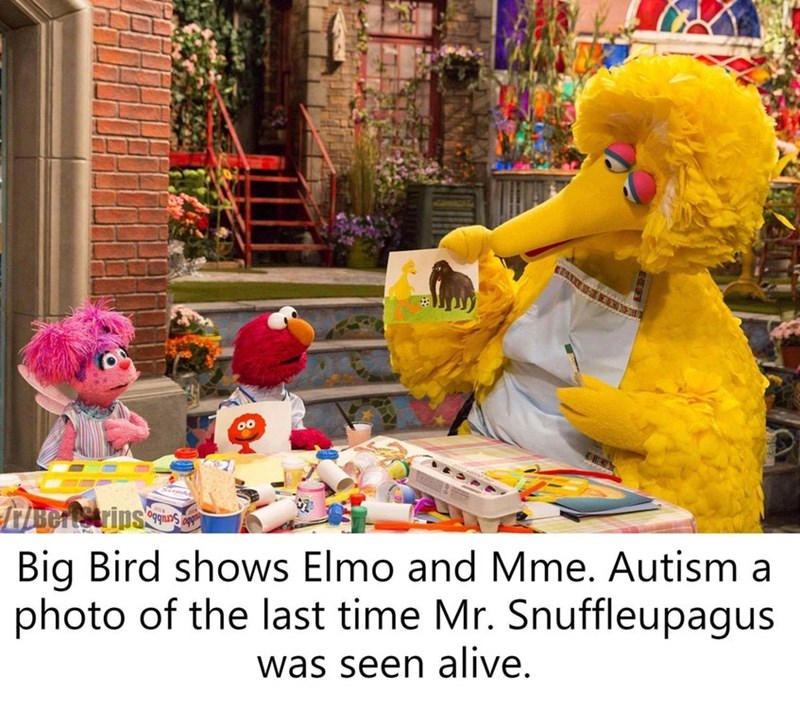 123 Sesame Street Big Bird Shows Political Correctness By Including Kids With Autism In His Slave Plantation Sesame Street Meme On Me Me
