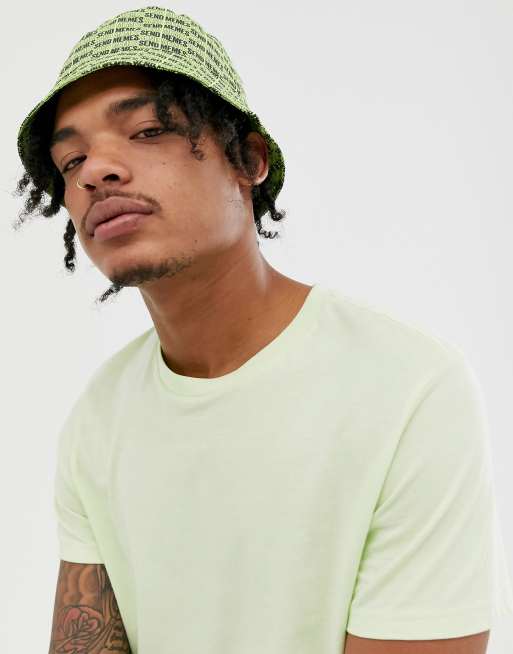 Asos Design Bucket Hat With Neon Send Memes Print Asos