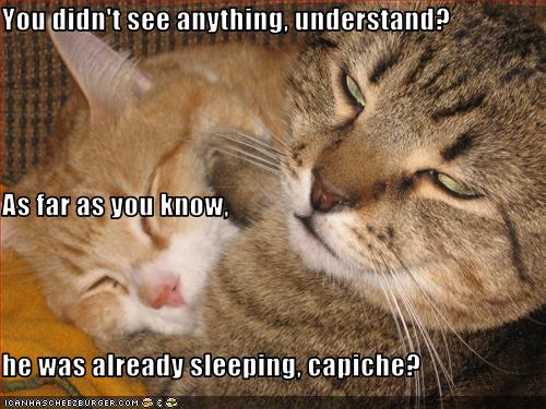 You Didn T See Anything Understand As Far As You Know He Was Already Sleeping Capiche Cheezburger Funny Memes Funny Pictures