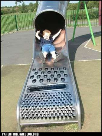 The Inventor Of The Cheese Grater Slide Was A Cruel Cruel Man Parenting Crazy Parenting Fails Funny Parents Family Fails