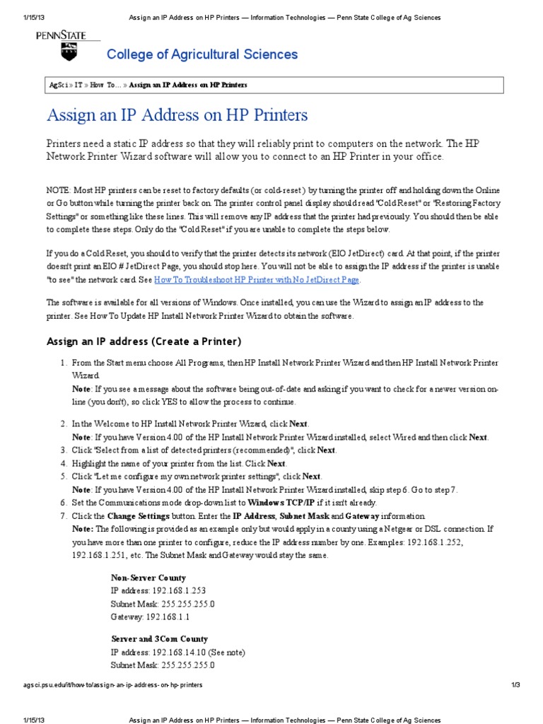 Assign An Ip Address On Hp Printers Ip Address Gateway Telecommunications