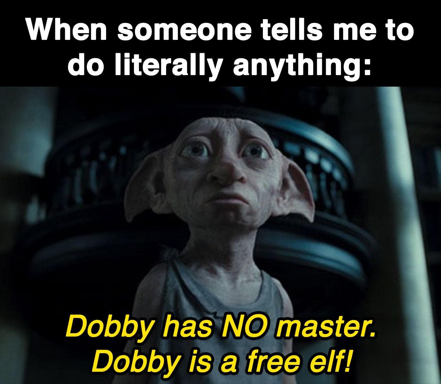 Dobby Has No Master Dobby Is A Free Elf Meme