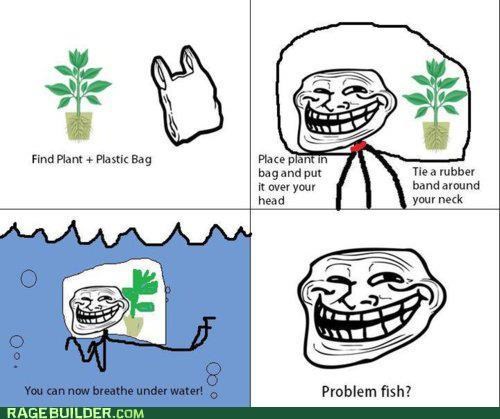 Find Plant Plastic Bag Place Plant In Bagand Put It Over Your Head Tie A Rubber Band Around Your Neck 0 You Can Now Breathe Under Water Problem Fish Damnlolcom Sexy