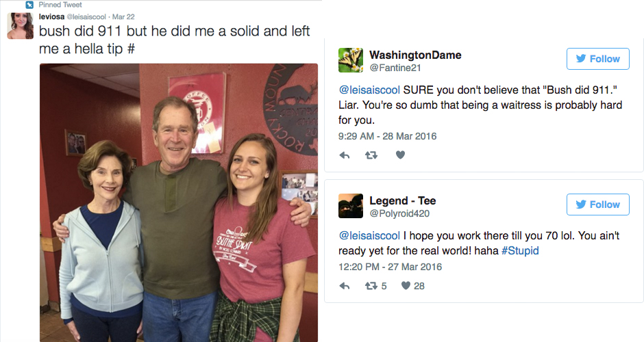 Waitress Who Got A Big Tip From George W Bush Walks Back Her Viral Bush Did 9 11 Tweet First We Feast