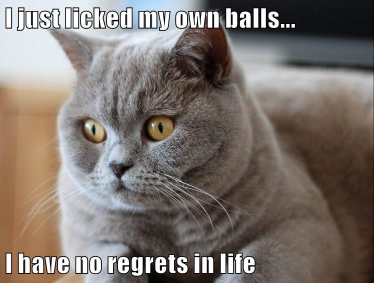 I Just Licked My Own Balls I Have No Regrets In Life Lolcats Lol Cat Memes Funny Cats Funny Cat Pictures With Words On Them Funny