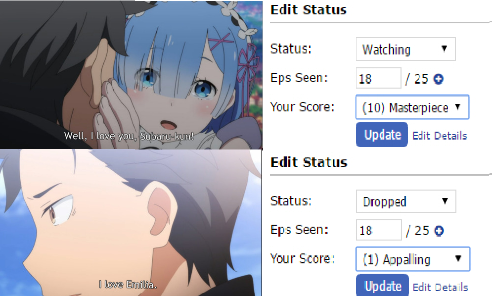 Love Emilia Natsuki Subaru 2016 How Rezero Will End Anime Meme On Ballmemes Com