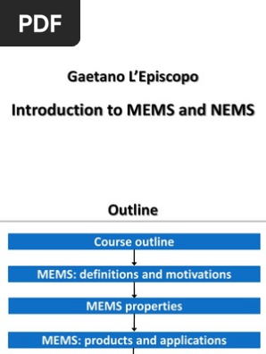 Introduction To Mems Pdf Gaetano L U2019episcopo Introduction To Mems What Are Mems Micro Electro Mechanichal Systems Mems Are Integrated Devices Or Course Hero