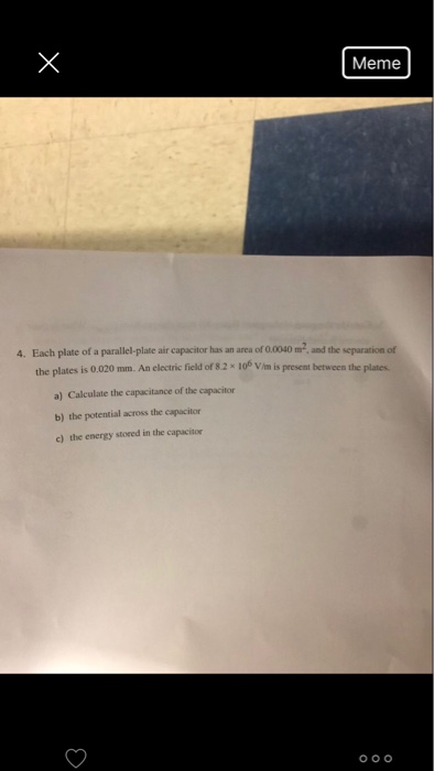 Solved Meme Each Plate Of A Parallel Plate Air Capacitor Chegg Com