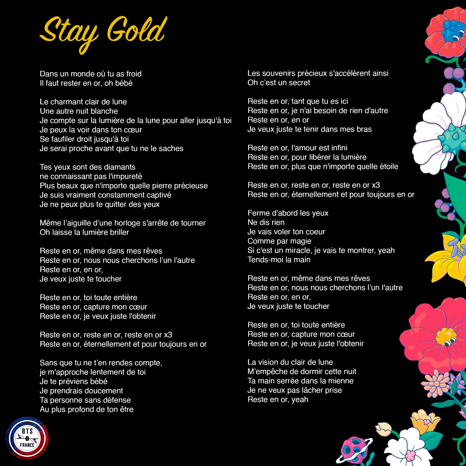 Bts Franceᴮᴱ On Twitter Staygold Voici La Traduction Francaise De La Chanson Stay Gold Des Bts Twt Credit L Equipe Bts France