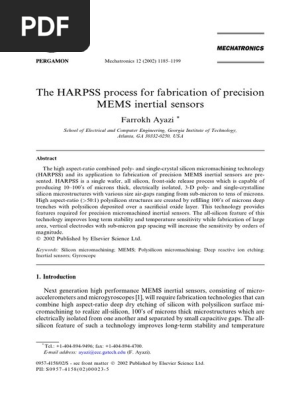 The Harpss Process For Fabrication Of Precision Mems Inertial Sensors Microelectromechanical Systems Chemical Vapor Deposition