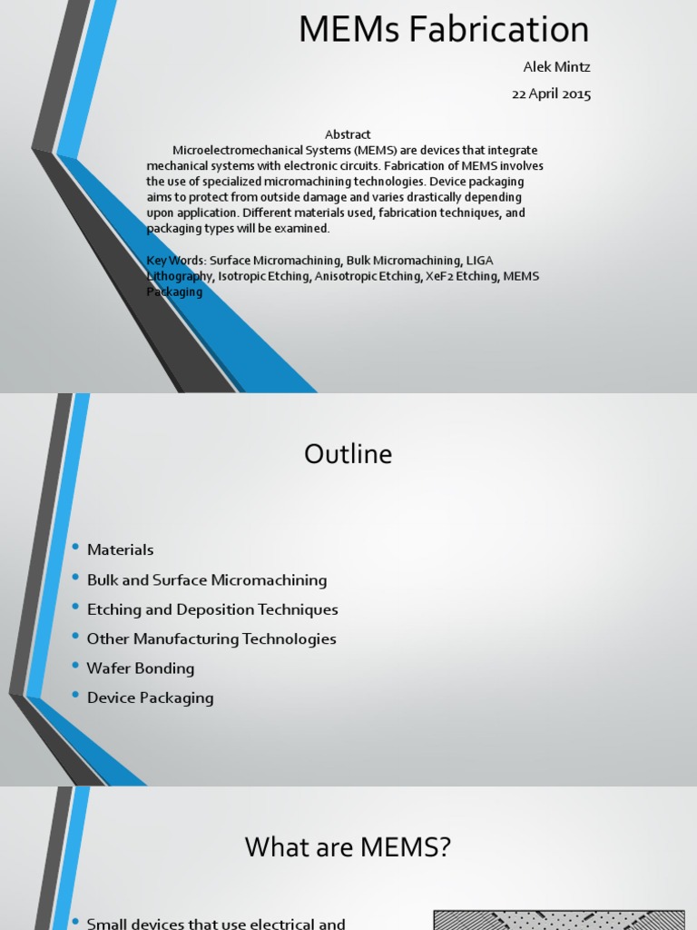 Mems Fabrication Alek Mintz 22 April 2015 Abstract Ppt Video Online Download