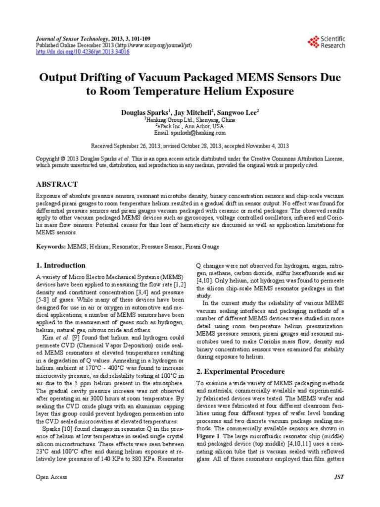 Pdf Output Drifting Of Vacuum Packaged Mems Sensors Due To Room Temperature Helium Exposure