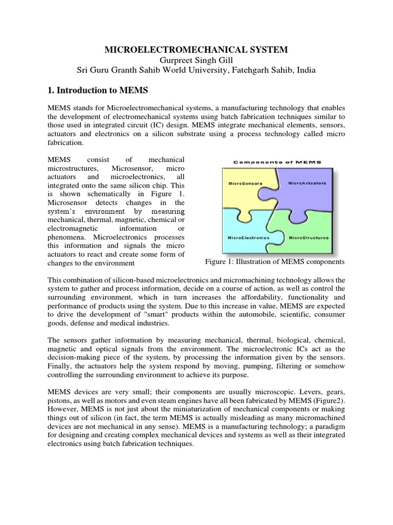 An Introduction To Mems Micro Electromechanical Systems