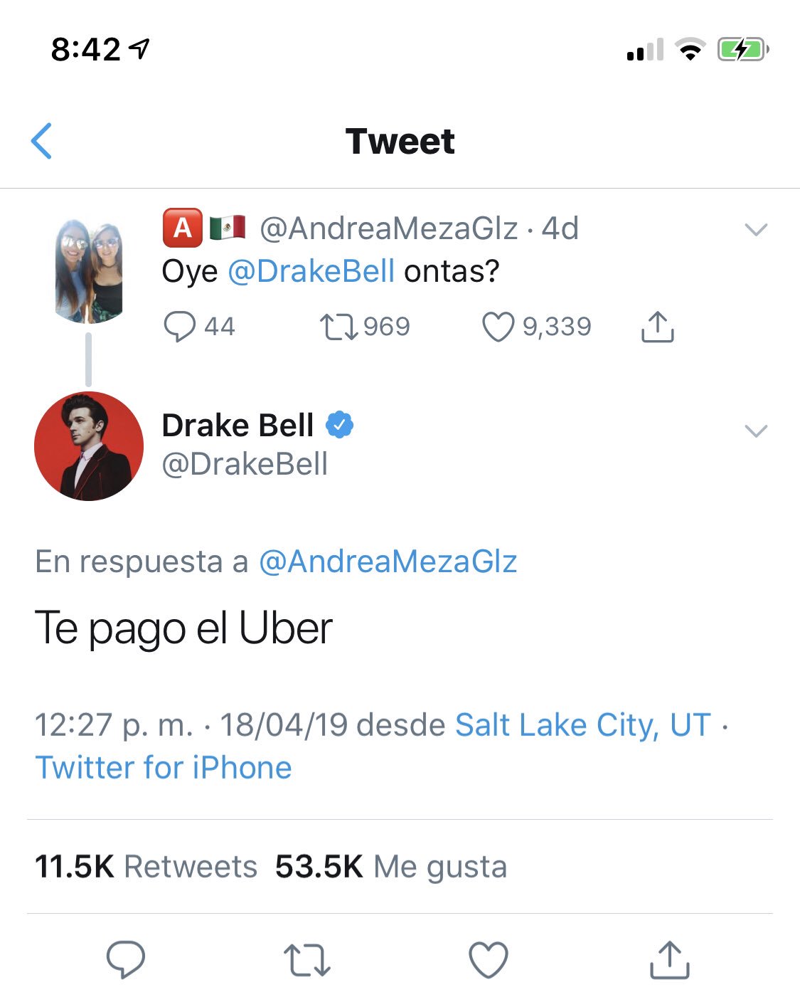 Cb Television No Twitter Enterate Espectaculos Drake Bell Decidio Seguir El Meme Contestando Te Pago El Uber A Una Chica Que Le Pregunto Ontas Https T Co Dcpbdgwzse