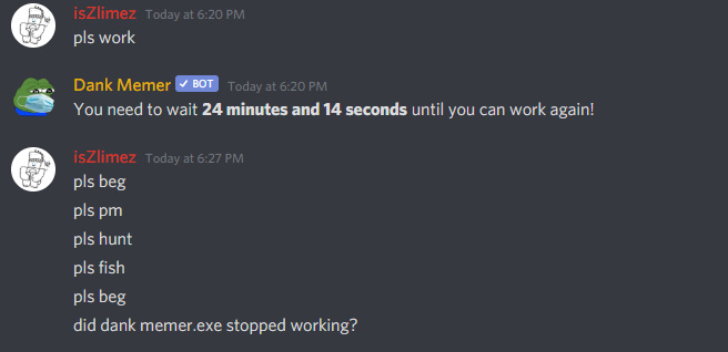Dank Memer Discord Bot On Twitter Why Pls Search And Beg No Work
