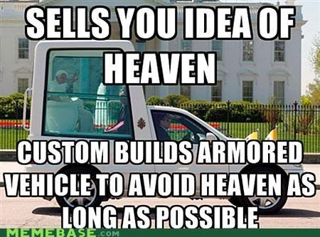 Pope Mobile Because The Pope Is Afraid To Get Shot Die And Go To Heaven Pope Logic Mrpotato Heaven Meme On Me Me