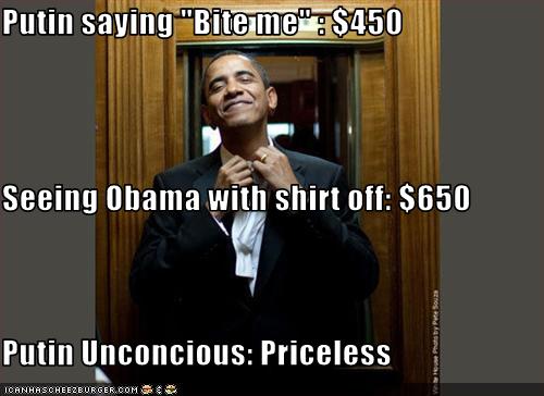 Putin Saying Bite Me 450 Seeing Obama With Shirt Off 650 Putin Unconcious Priceless Cheezburger Funny Memes Funny Pictures