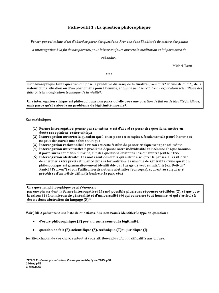 Fiche Outil 1 La Question Philosophique Raison Metaphysique