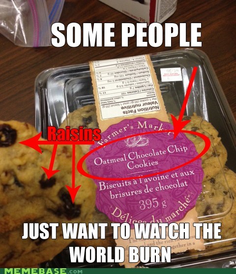 Dopl3r Com Memes When You Bite An Oatmeal Raisin Cookie Thinking It Was Chocolate Chip My Disappointment Is Immeasurable And My Day Is Ruined