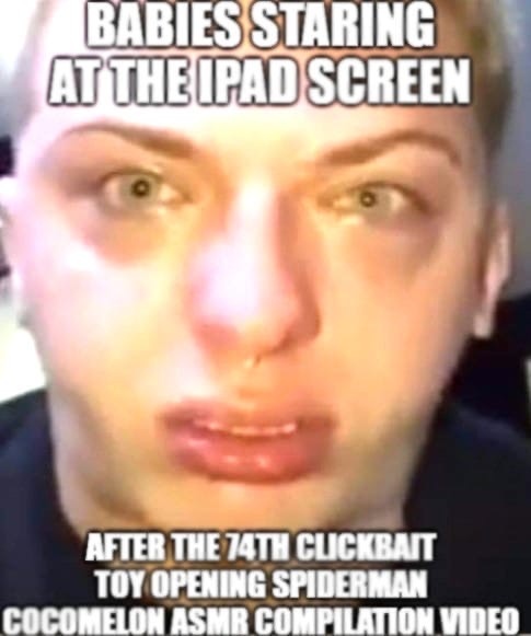 Babies Staring At The Ipad Screen After The 74th Clickbait Toy Opening Spiderman Cocomelon Asmr Compilation Video Hidden Talent Of Mine Making Babies Laugh Know Your Meme