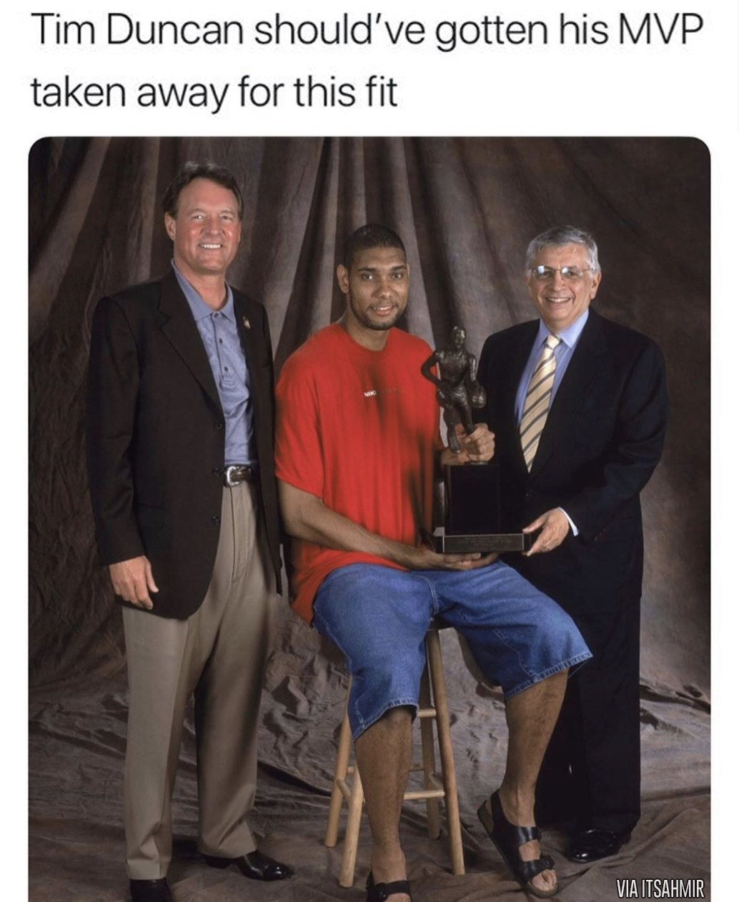 Tim Duncan Accepted His Mvp Award Wearing The Im Pressing Charges Starter Kit Outfit Media Gahdamn Timmy Forreal Lmaoooooo Trapvine Lmao Tagafriend Lmao Meme On Me Me
