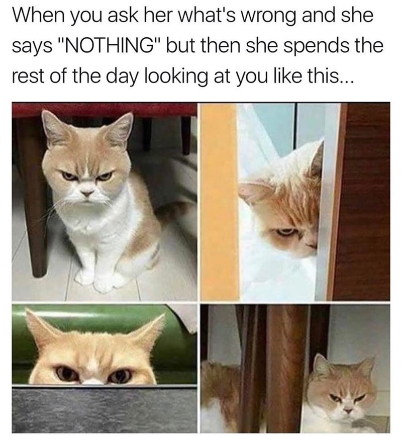 When You Ask Her What S Wrong Cat Meme Of The Decade Lol Cat Memes Funny Cats Funny Cat Pictures With Words On Them Funny Pictures Lol Cat Memes Lol Cats