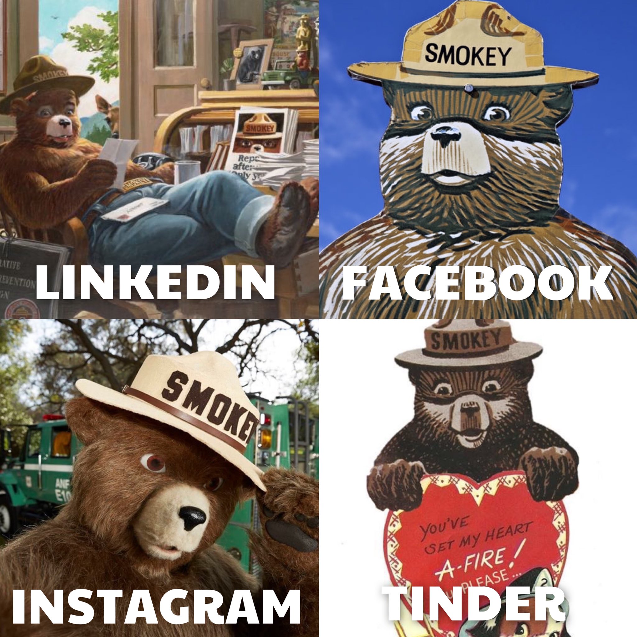 Smokey Bear On Twitter My Friend Dollyparton Started Her Own Meme Challenge So I Figured I D Join The Fun Too You Can Find Me On All These Platforms Except For The Last