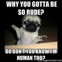 Why You Gotta Be So Rude Don T You Know I M Human Too 9gag